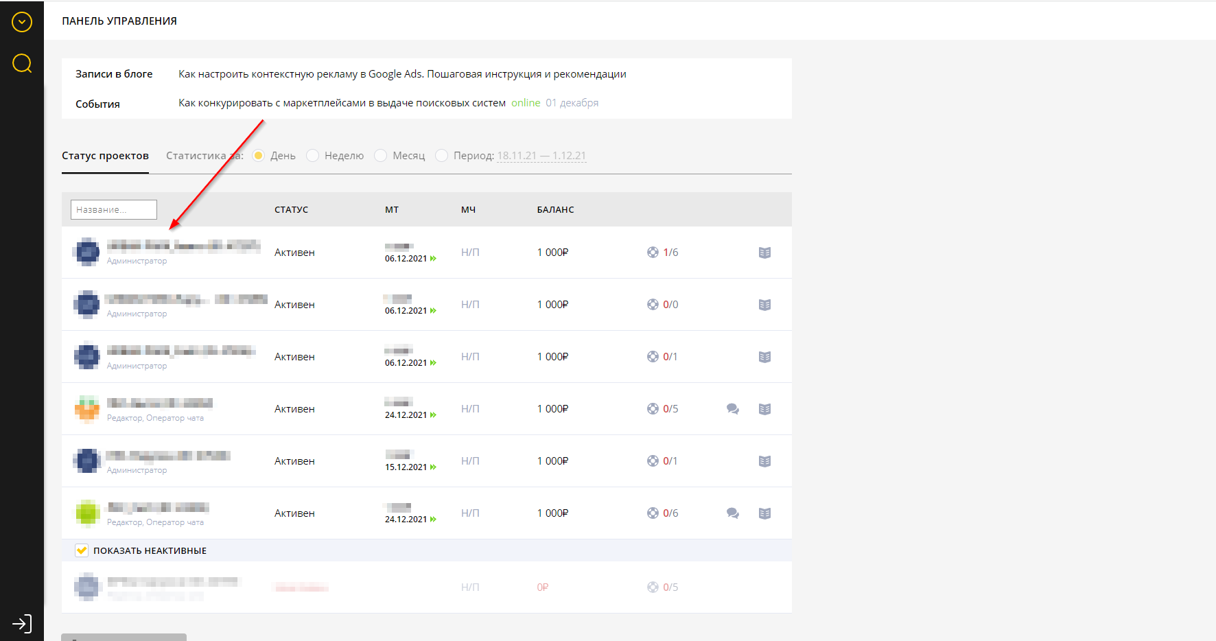 Заходите в ваш личный кабинет Callibri. Если проектов несколько, то переходите в нужный: