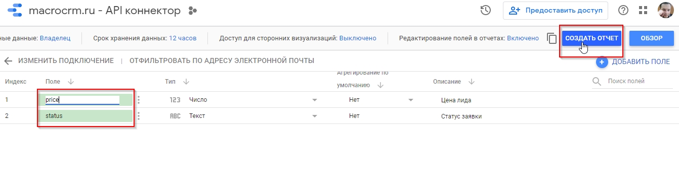 Теперь данные из коннектора будут доступны в Вашем отчете