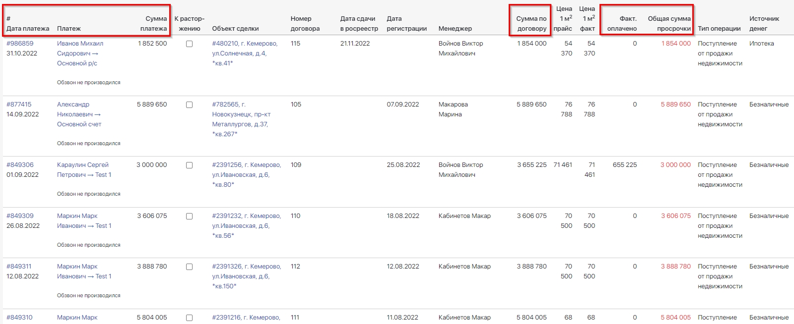 Сделка в работе/Проведена — отображает платежи только по сделкам, исключая платежи по броням, например задатки.