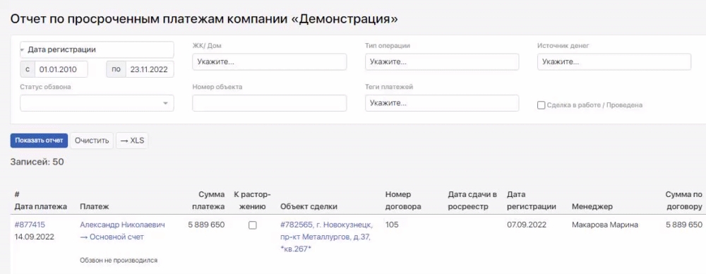 Отчет очень похож на Отчет о поступлениях за период, о котором мы рассказывали в этой статье. Но здесь акцентируется внимание именно на просроченных платежах, с которыми уже необходимо работать.