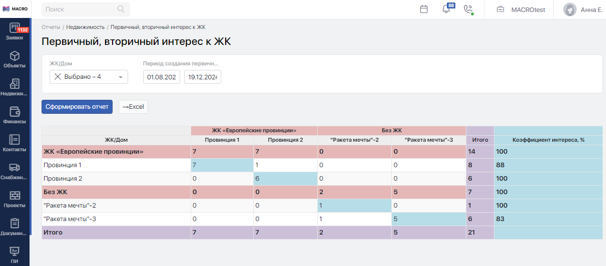 Отчет **Первичный, вторичный интерес к ЖК** находится в разделе **Отчеты -> Маркетинг.**&#x20;