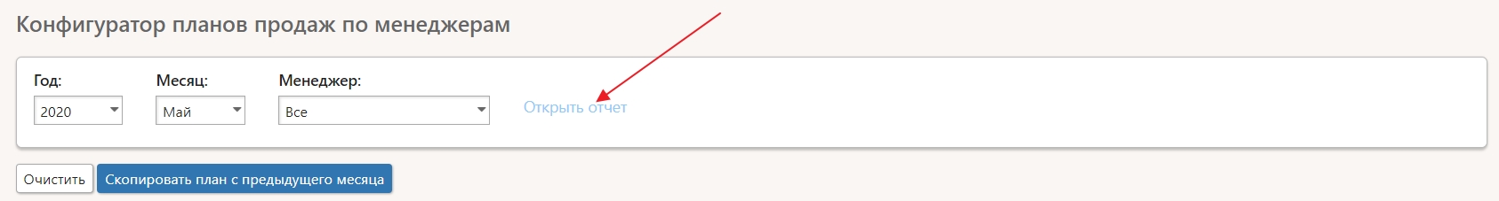 В верхней части фильтра можно сразу перейти к отчету по выполнению плана продаж.