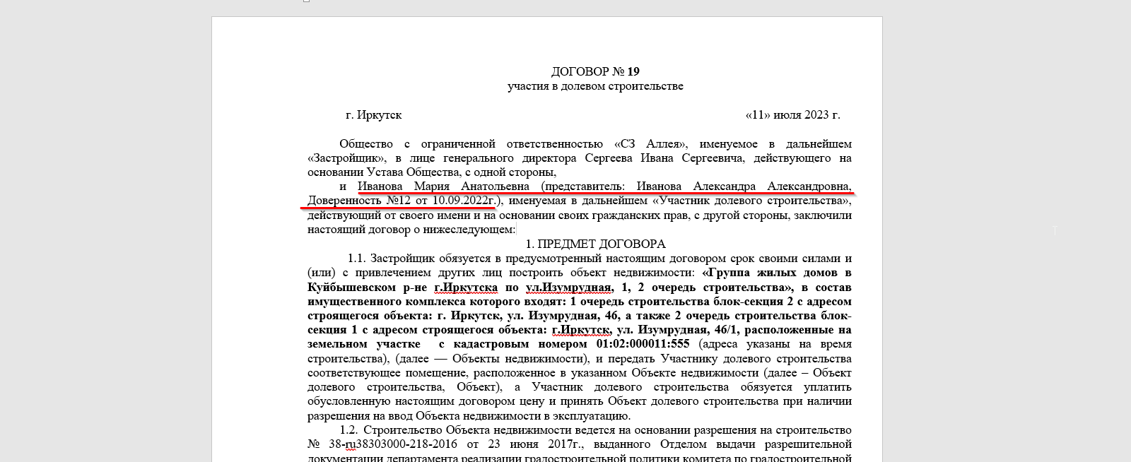 В случае, если в Сделке участвуют несовершеннолетние покупатели, им необходимо указать представителей.