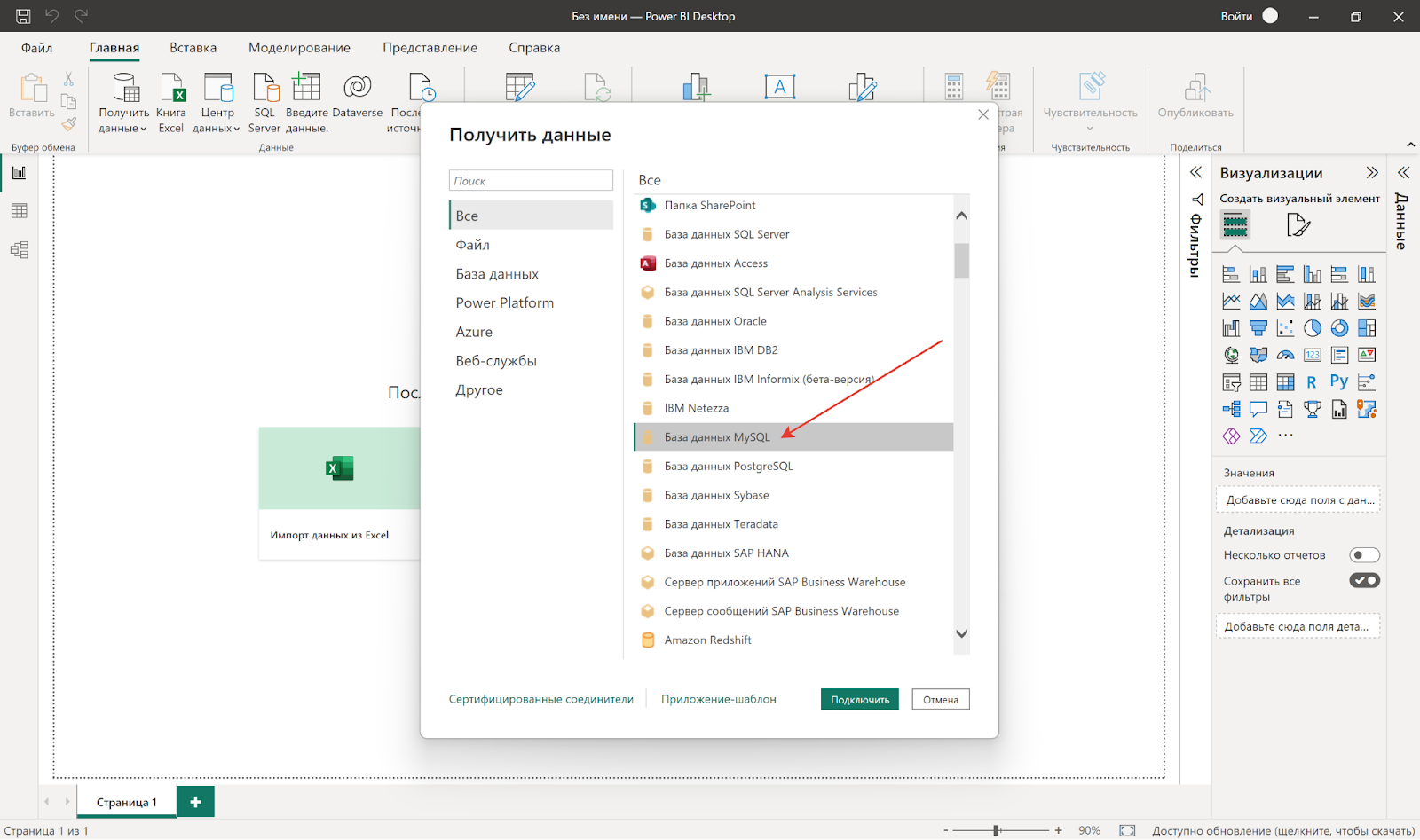 MacroData использует базу данных MySQL в качестве хранилища данных. Необходимо дополнительно установить пакет Oracle MySQL Connector/NET перед использованием этого соединителя в Power BI Desktop. Читать подробнее о соединителе.