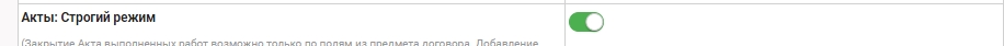 Закрытие Акта выполненных работ возможно только по полям из предмета договора.