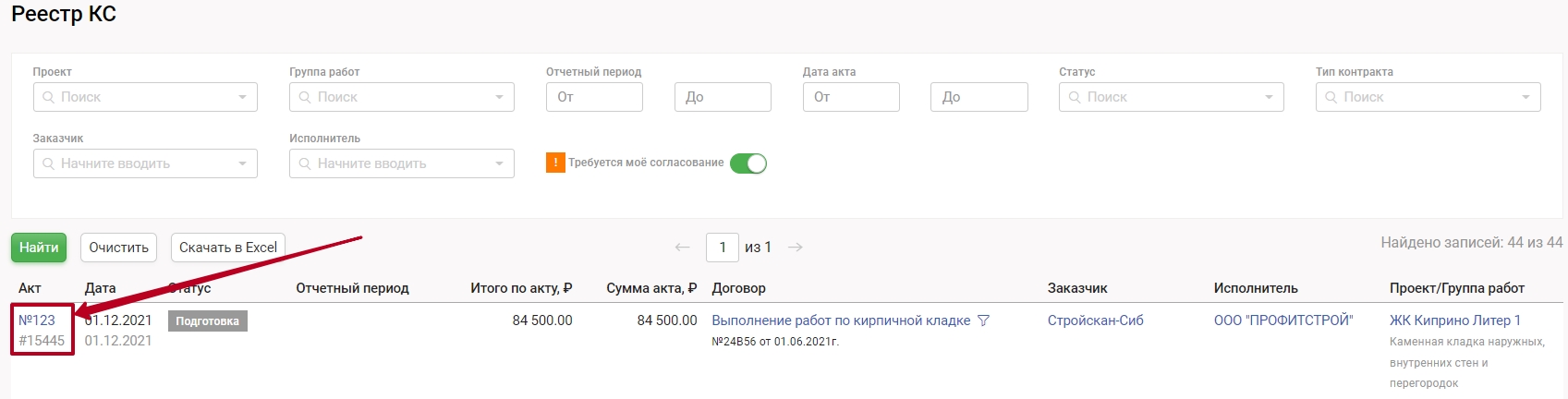 Можете перейти в акт по номеру, проверить и согласовать или оставить комментарий.