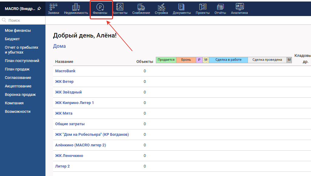 Модуль Финансы
