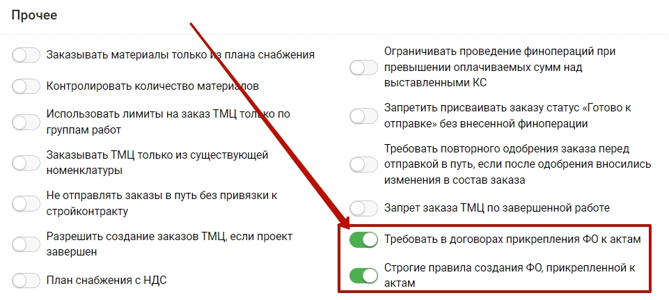 Для работы ограничения, ответственному за настройку параметров проекта, в параметрах проекта необходимо включить функции: