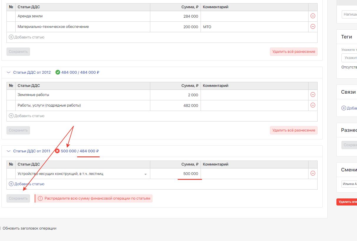 Сумма ФО полностью должна быть разнесена по статьям ДДС