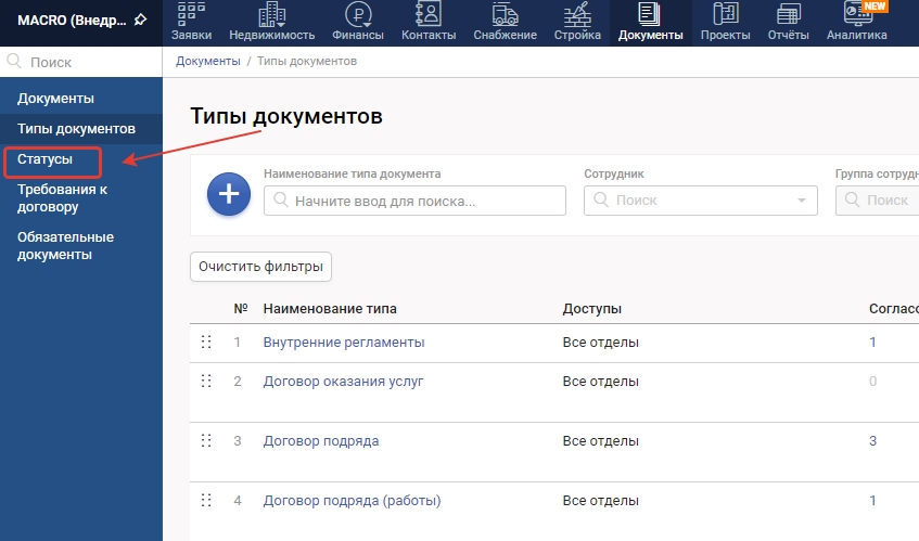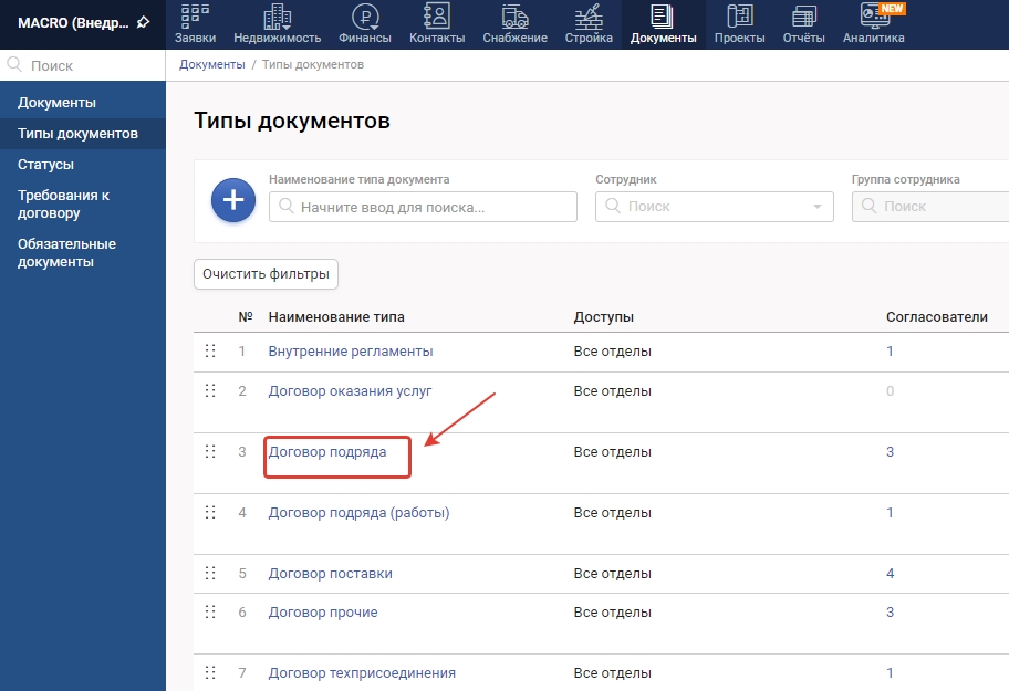 4. Перейдите в Типы документов