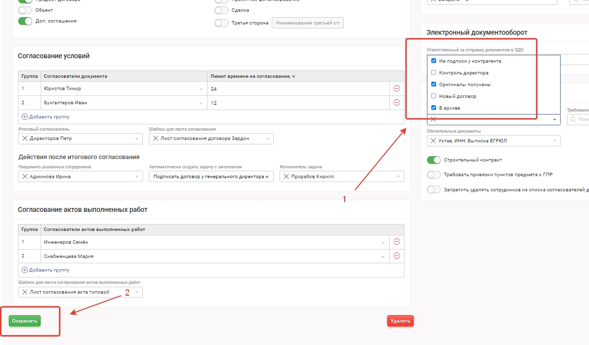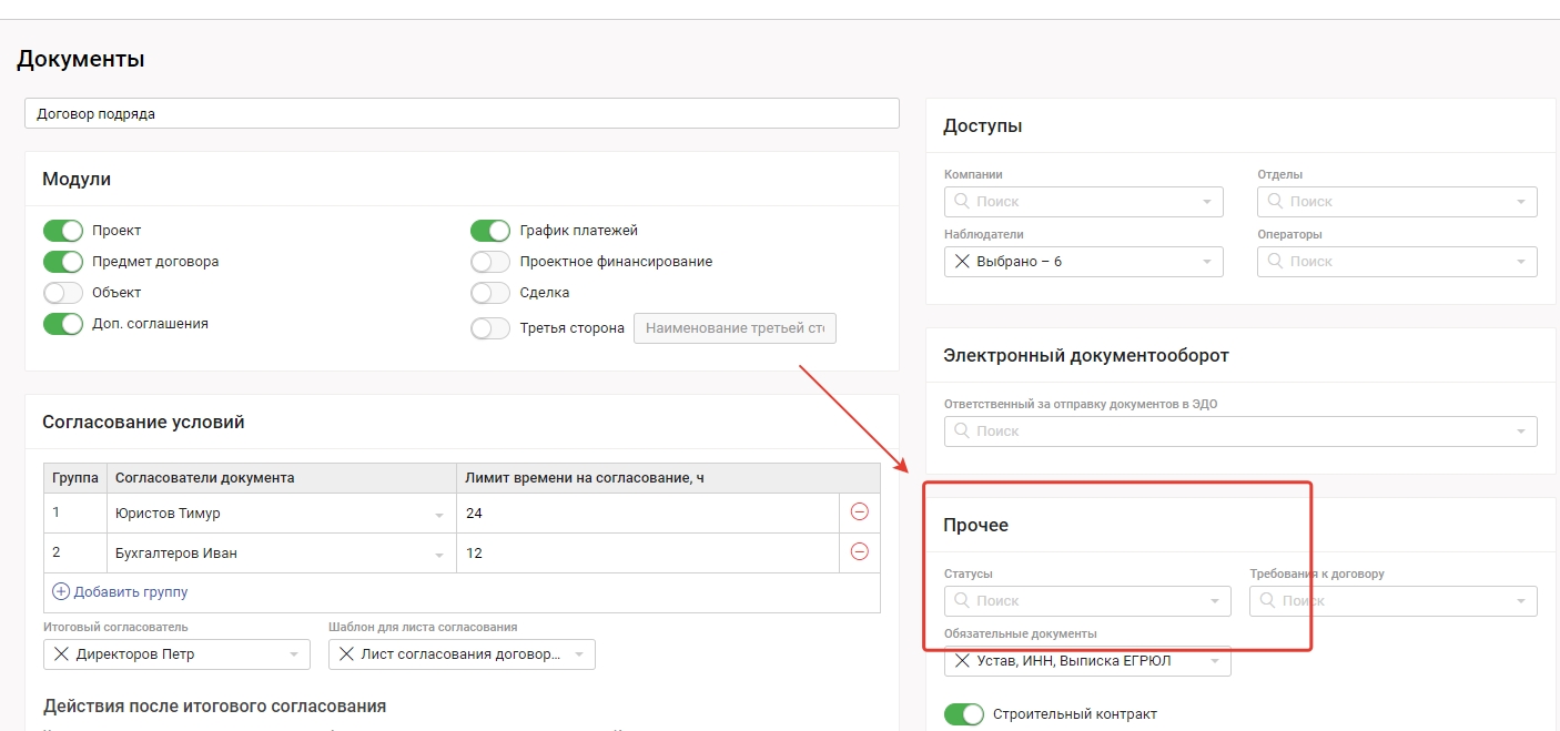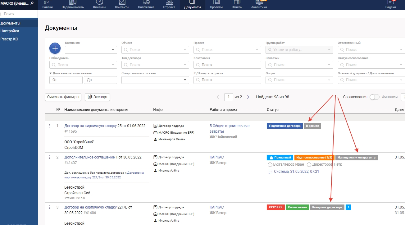 Дополнительные статусы документов используются для дополнительной категоризации договоров.