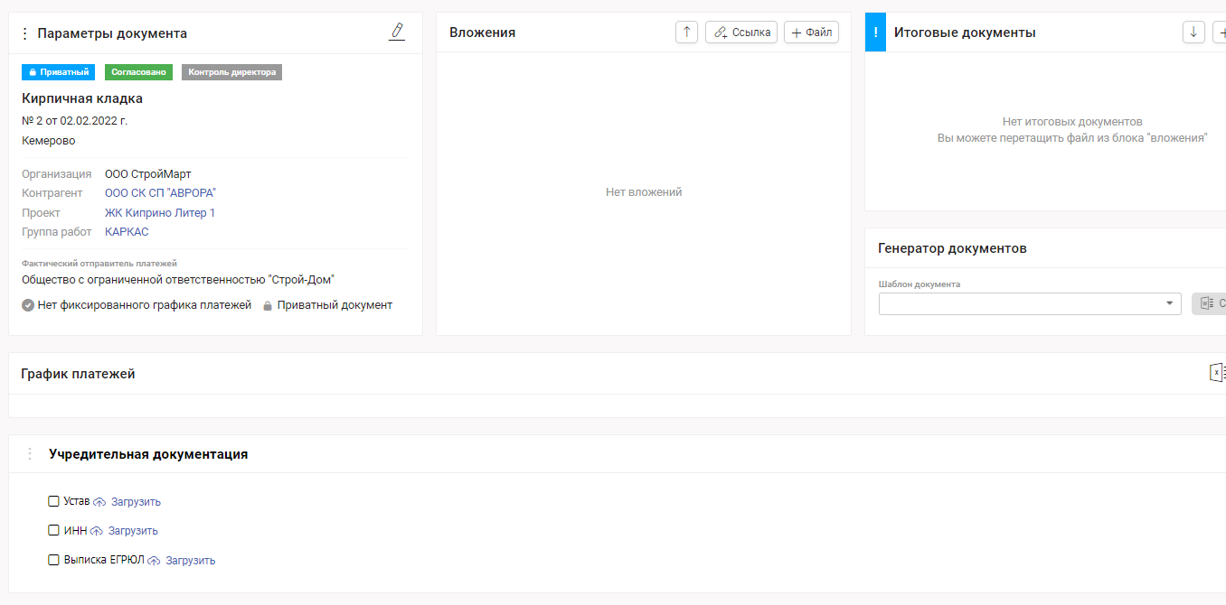 Настройка "Нет фиксированного графика платежей" включается автоматически, при создании дополнительного соглашения