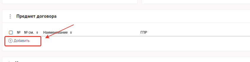 Заполнение предмета договора: