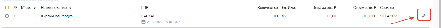 1. Для редактирования данных нажмите на карандаш