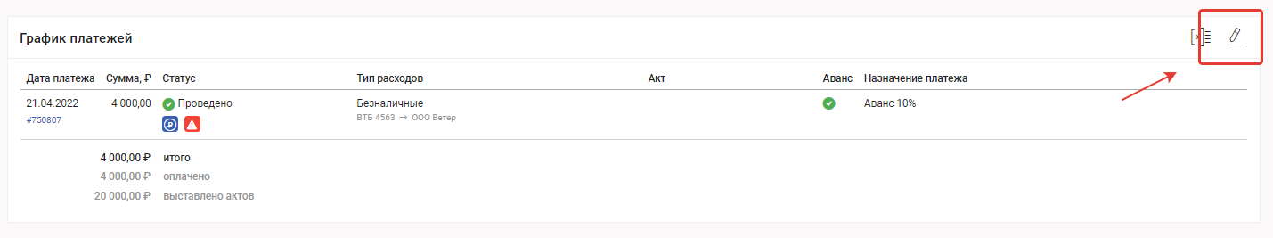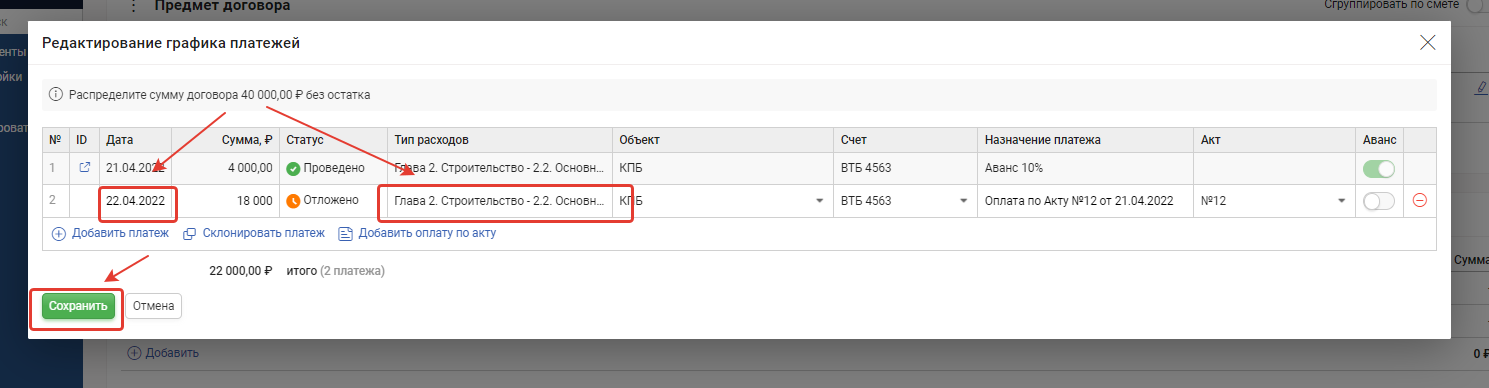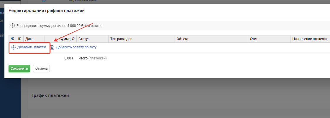5. В редакторе Графика платежей нажмите "+Добавить платеж"