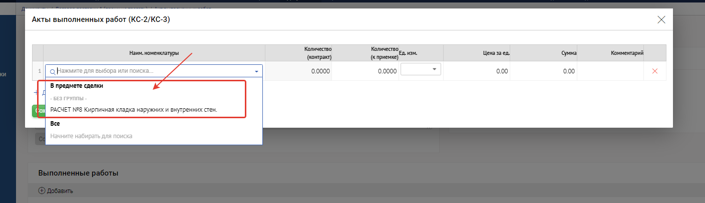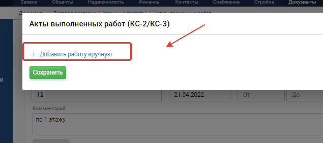 12. В блоке Выполненные работы нажмите "+Добавить"