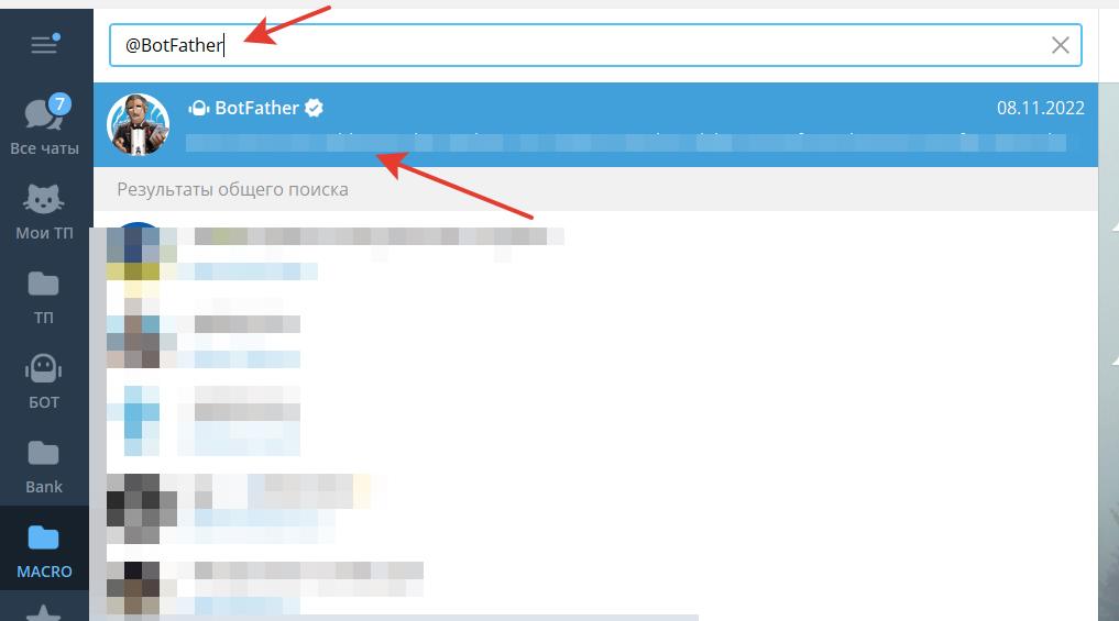 Откройте Telegram и в строке поиска введите название чата @BotFather