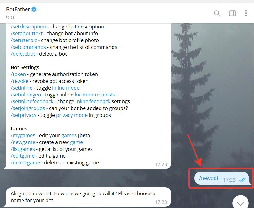 Введите или выберите из списка команду: /newbot
