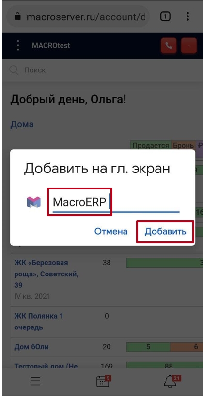Готово. Теперь на рабочем столе смартфона появился значок с прямым доступом в систему MacroERP.