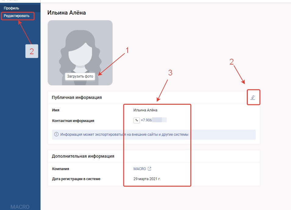 2. Отредактировать информацию можно нажав на "Карандаш" или выберете в меню слева "Редактировать".
