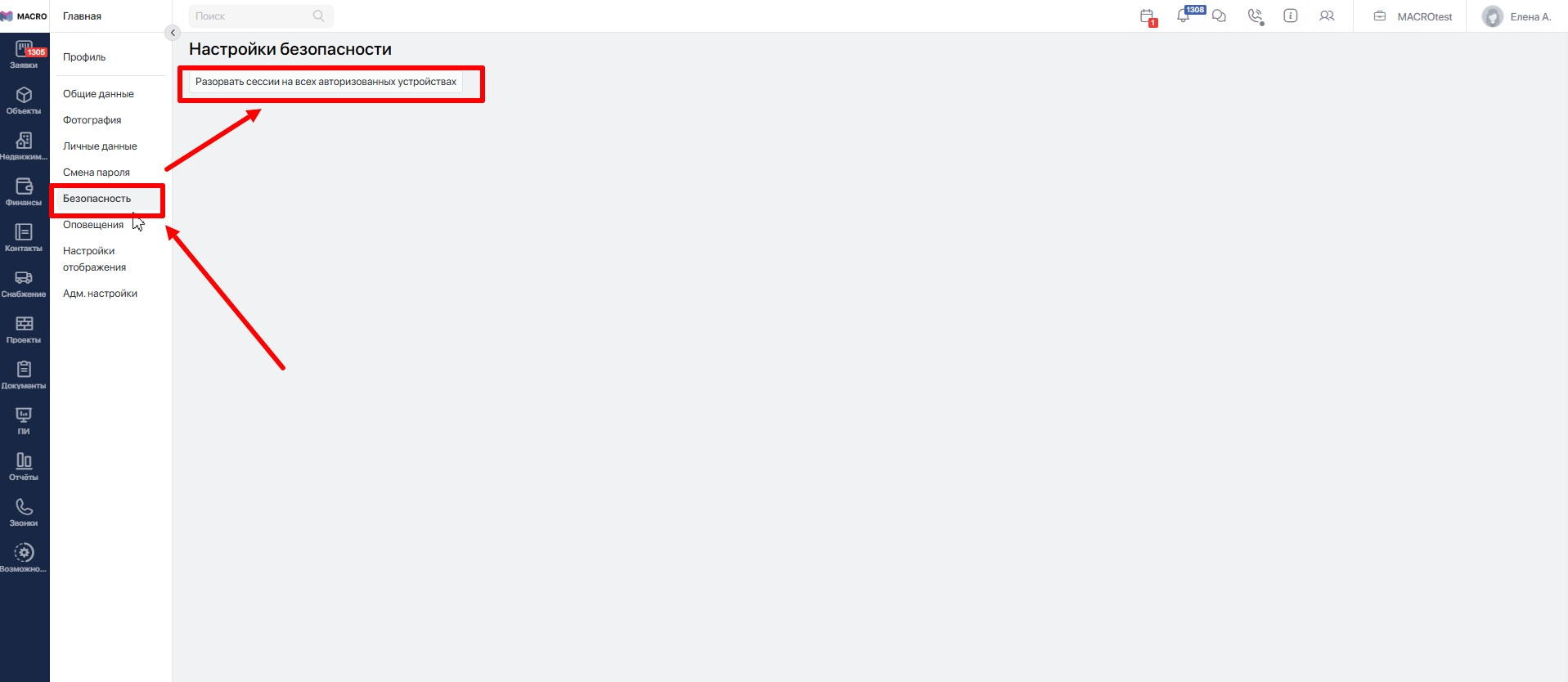 Перейдите в режим редактирования профиля и в меню слева выберите вкладку <mark style="background-color:purple;">**Безопасность**</mark> далее нажмите  **`Разорвать сессии на всех авторизированных устройствах`**