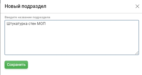 Далее в добавленный раздел необхлдимо добавить подраздел (в данной структуре подраздел является работой).