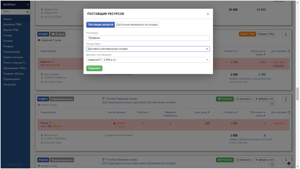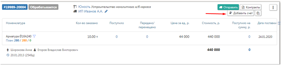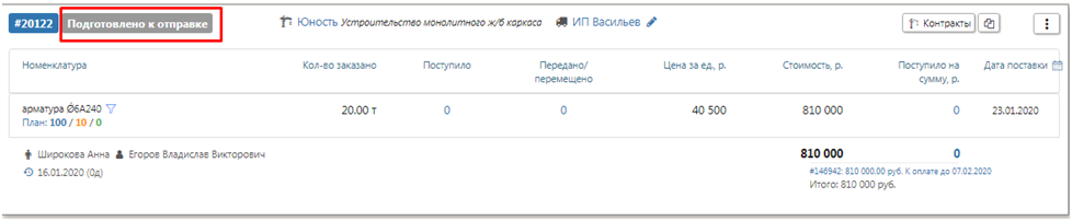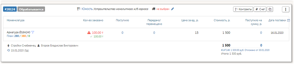 б) указать тип доставки в) выполнить привязку договора поставки (при необходимости) договор должен быть согласован в модуле Контракты