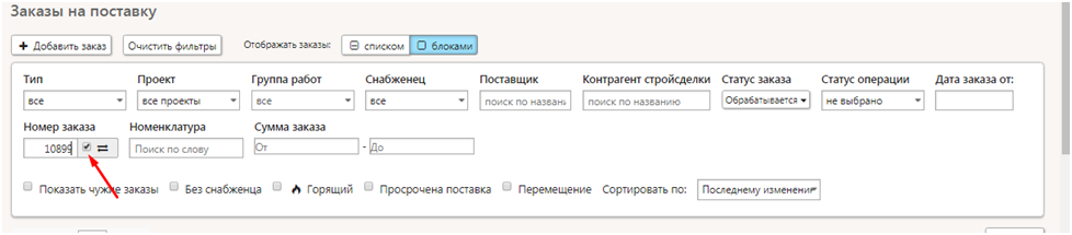При поиске таких заявок в базе на рабочей панели в окне номер заявки ставить галочку