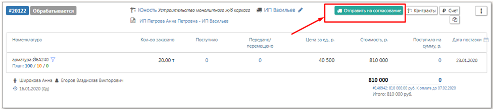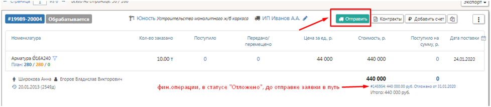 - требуется согласование и акцептование счета. Заказ не отправить в путь без согласования и акцептования фин.операции.
