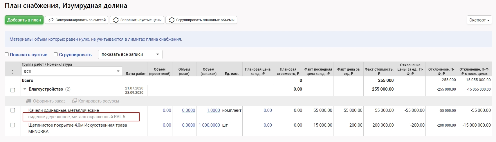 С целью конкретизации характеристик используемого материала при реализации проекта в Плане Снабжения есть возможность прописывать комментарий к номенклатуре (позиции), данный комментарий не влияет на саму номенклатуру, а приминим только лишь к конкретной позиции в плане снабжения.