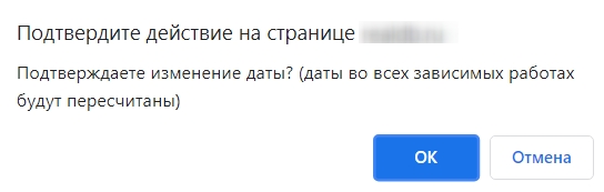 При попытке вручную изменить дату начала или окончания система запросит подтверждение.
