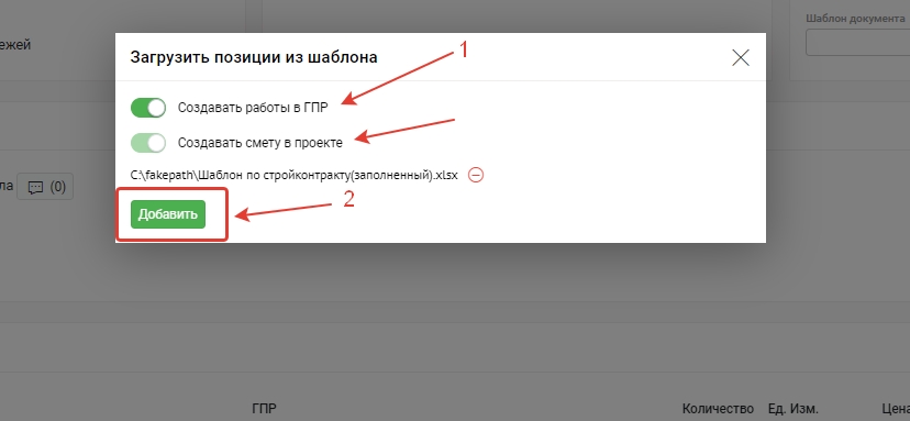 При включении данной настройки загруженный шаблон создаст работы в ГПР (по-умолчанию выключен)