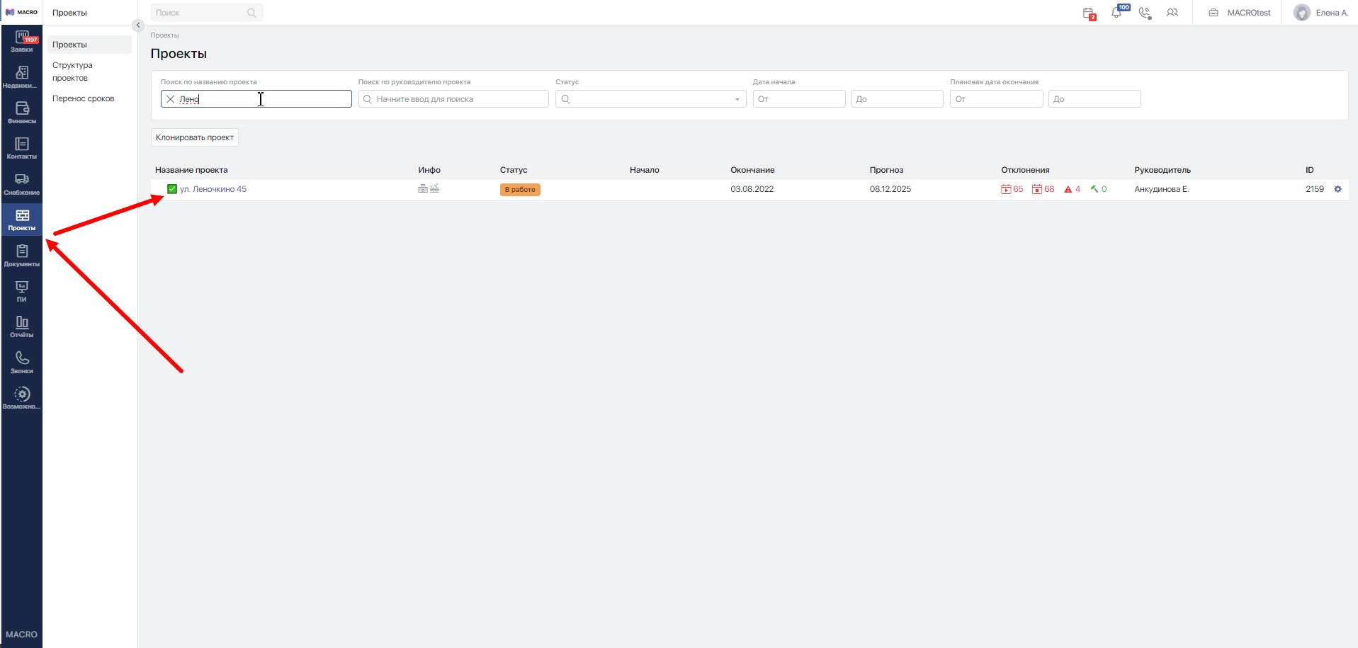 Зайдите в модуль Проекты и выберите проект, нажав на его название