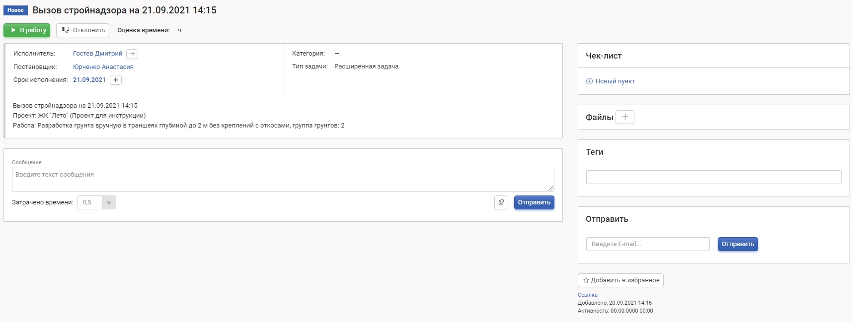 После выполнения работы, или после выполнения предписаний и устранения дефектов ответственный за ведение ГПР сотрудник может осуществить вызов специалиста стройнадзора (выставленного параметрами проекта) для очуществления приемки.