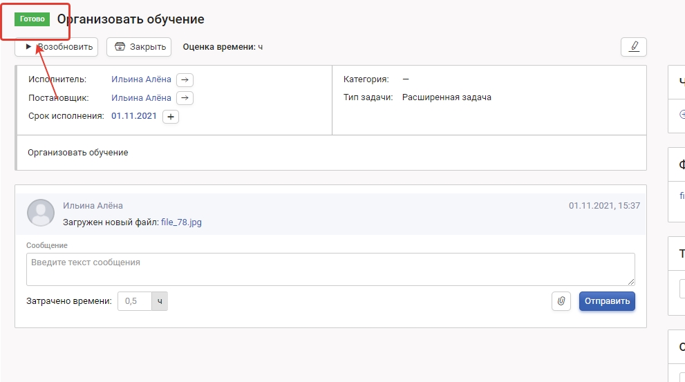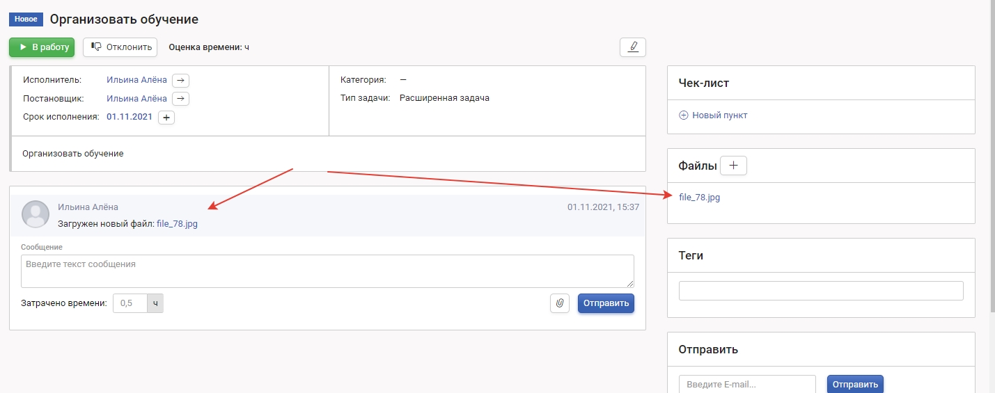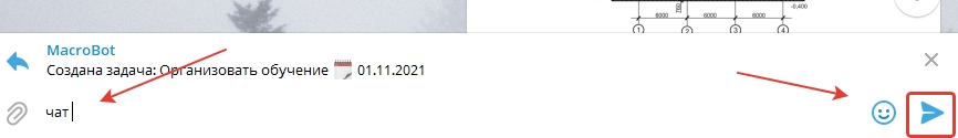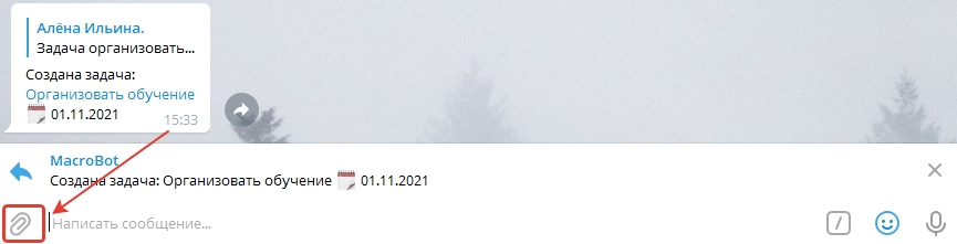 2. В строке сообщения через скрепку прикрепите файл и нажмите Отправить.