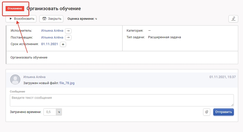 2 Напишите слово «Отклонить» и нажмите Отправить