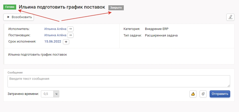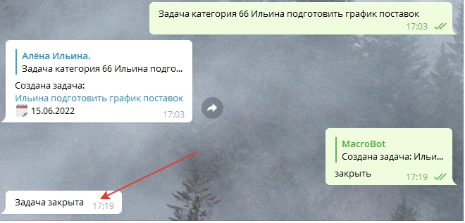 2 Напишите слово «Закрыть» и нажмите Отправить