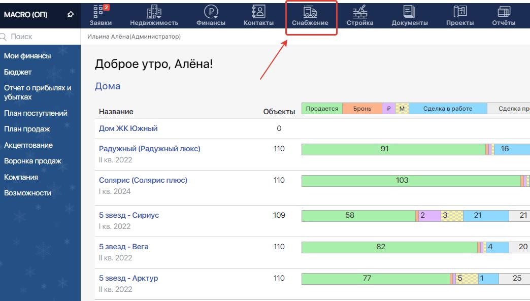 1. Перейдите в модуль «Снабжение»