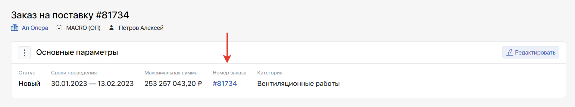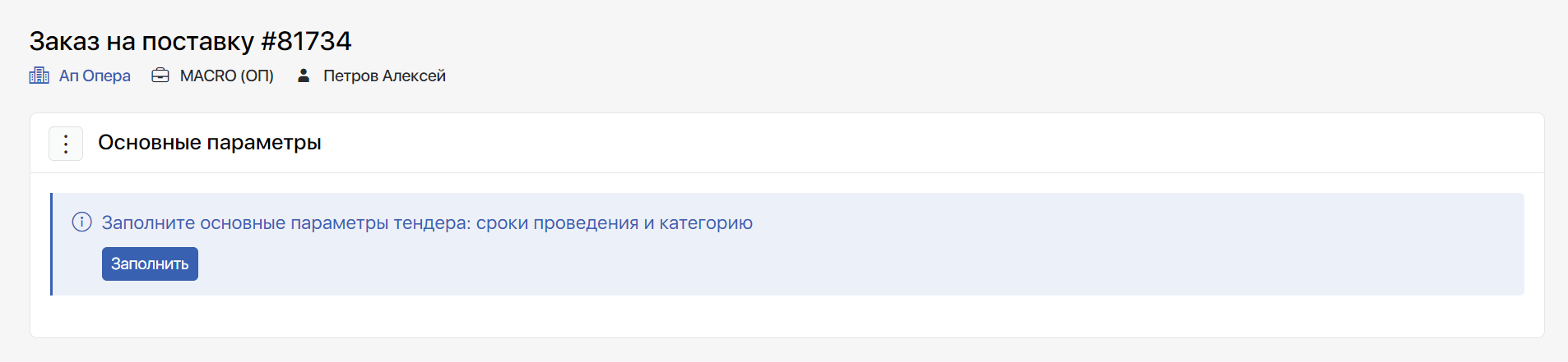 6. В основных параметрах тендера, созданного из заказа, всегда будет указываться связь с этим заказом