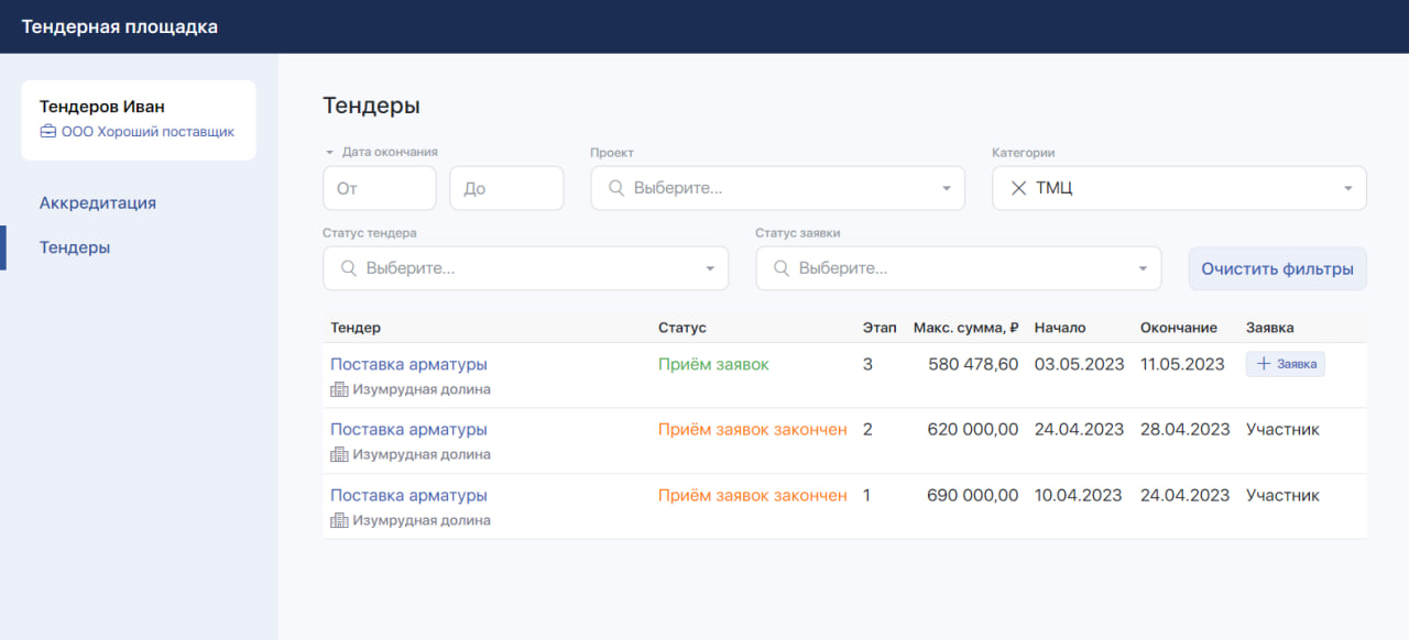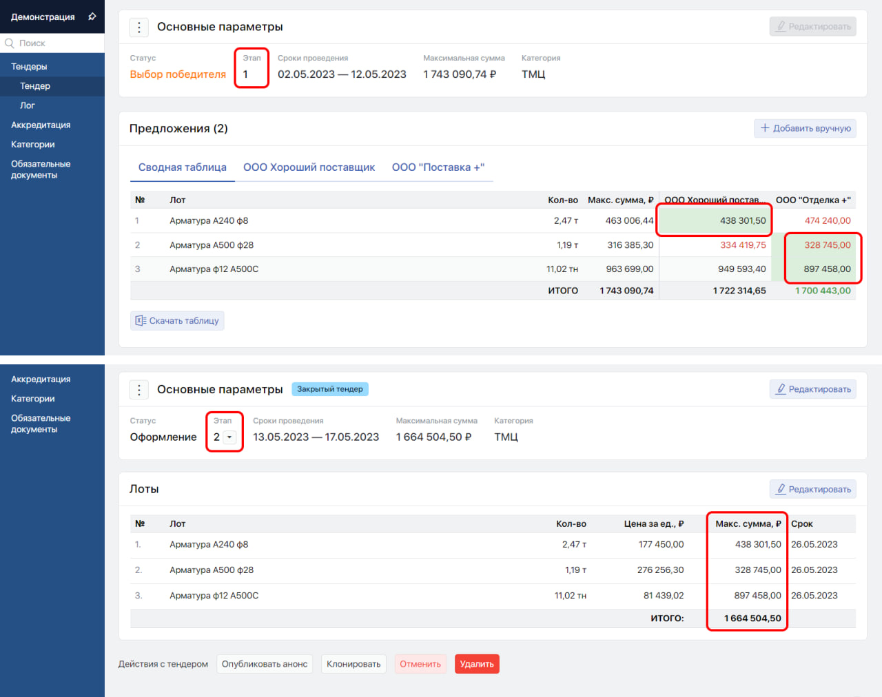Проведение тендера в несколько этапов