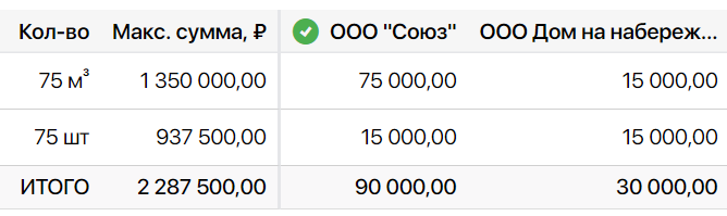 Если среди предложений выбран победитель, то рядом с его наименованием во фрейме «Предложения» будет отображаться зеленая галочка.