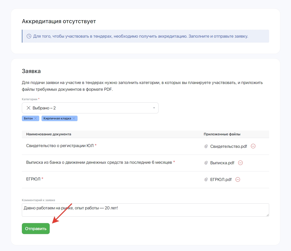После получения аккредитации переходите к подаче заявки на интересные Вам тендеры.