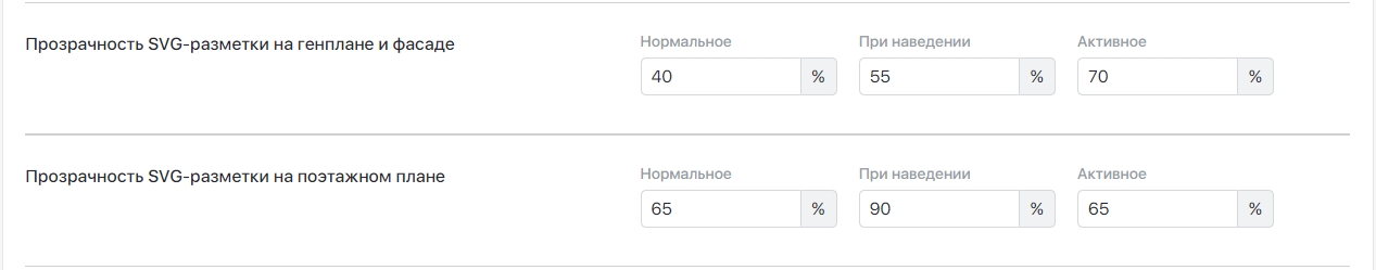 Если требуется включить заливку доступной разметки, то задайте в настройке Прозрачность SVG-разметки на генплане и фасаде значение отличное от нуля в поле Нормальное.