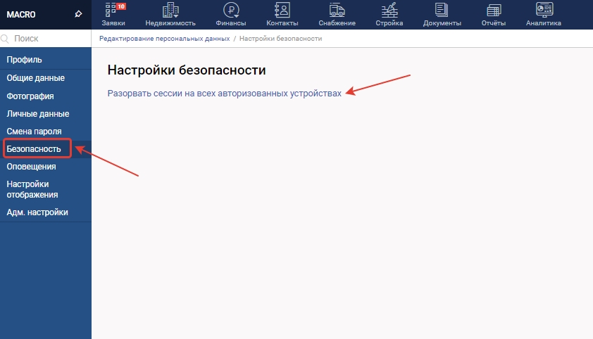 3. Нажмите "Разорвать сессии на всех авторизированных устройствах"