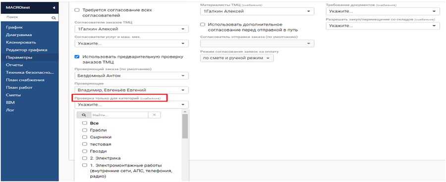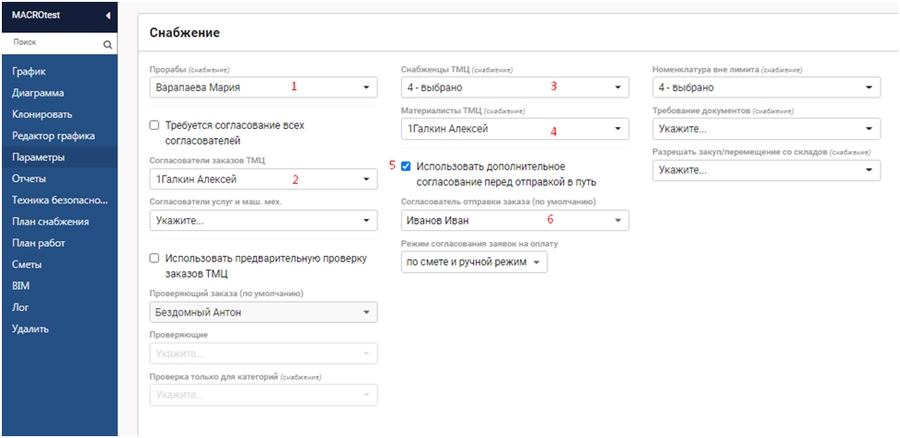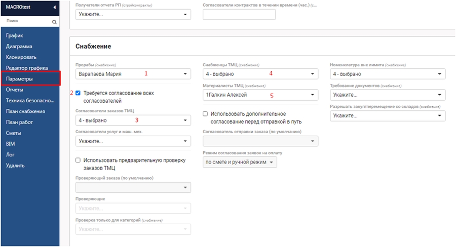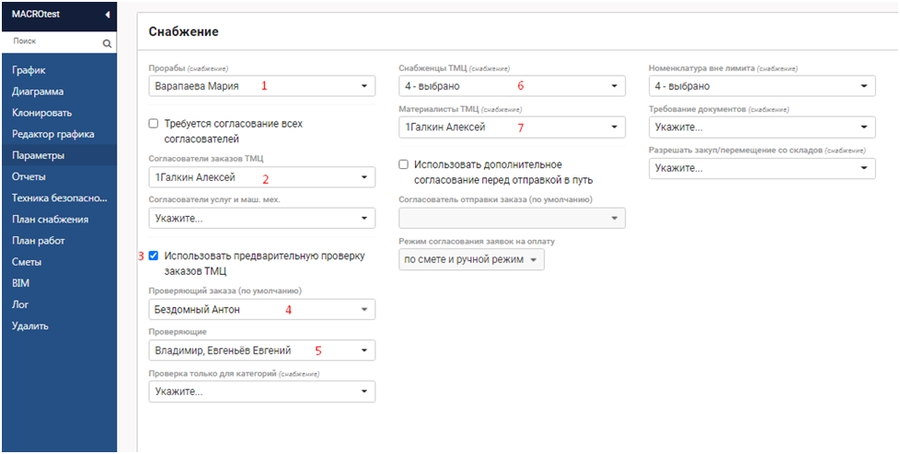 Данный функционал можно комбинировать между собой и формировать индивидуальные сценарии работы отдела снабжения для каждого проекта индивидуально.