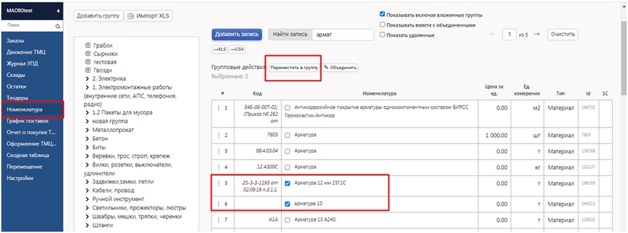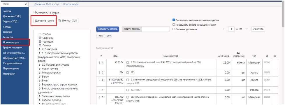Использовать дополнительную проверку можно не на все ТМЦ, а для определенных групп которые нужно предварительно сформировать в модуле Снабжения в инструменте Номенклатура ( например: Арматура, Бетон, Электрика и т.д)