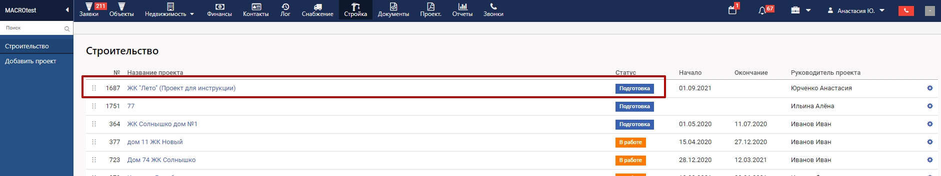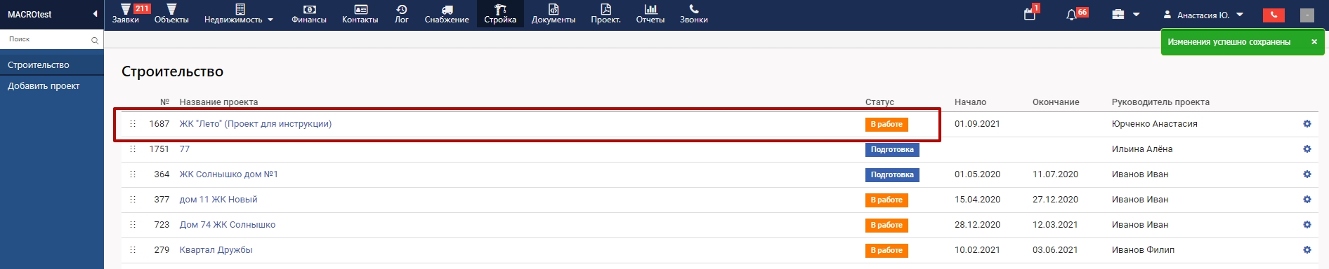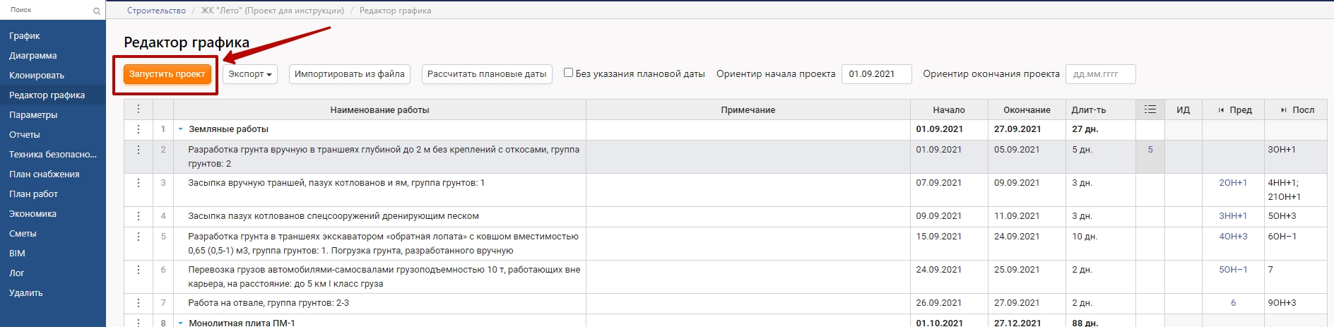 После того, как ответственный за редактирование внес все требуемые данные в график производства работ его необходимо запуситть в работу. Данная функция доступна сотруднику выставленному в параметрах проекта ответственным за редактирование ГПР.