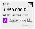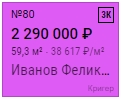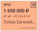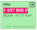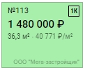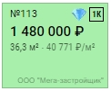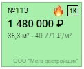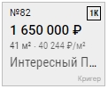 Малая плитка — только статус и количество комнат квартиры. Подходит для обзора больших многоподъездных домов.