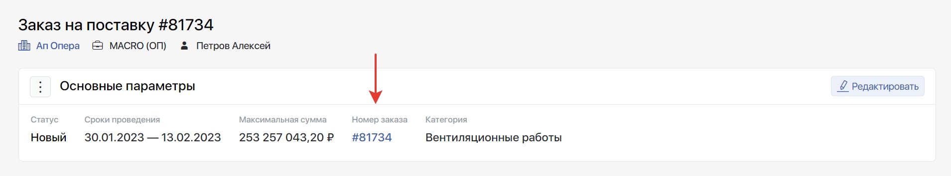 6. В основных параметрах тендера, созданного из заказа, всегда будет указываться связь с этим заказом